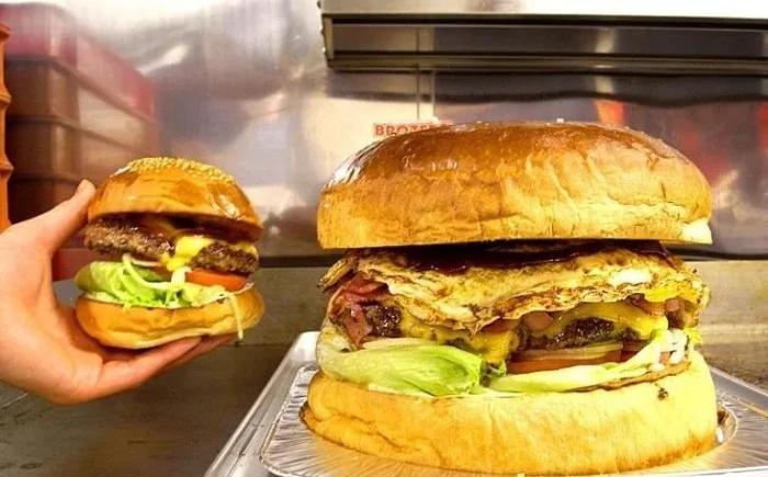 這些連鎖店也會不定期地推出量大的食品供客人們選擇,就比如說麥當勞每年都會推出巨型巨無霸,而一些自營的小店同樣會有大號套餐,至少我在國內是沒怎麼見過的(可能是我無知)。
