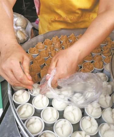 碗糕店老闆"挖"碗糕動作熟練