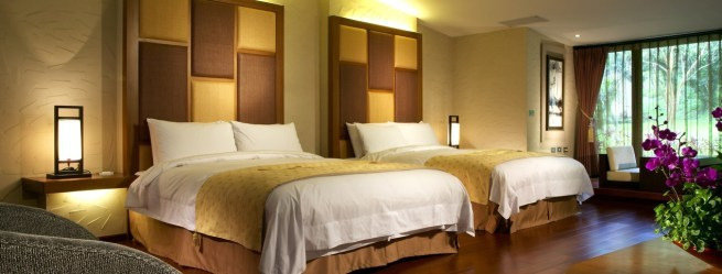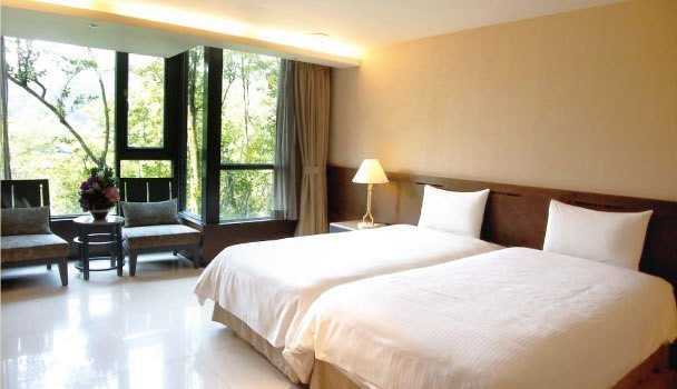 瑞穗蝴蝶谷溫泉渡假村建築採挑高設計,雪白的大理石地板加上禪風設計,整體感覺明亮又大方,而且瑞穗蝴蝶谷溫泉渡假村還有多種房型,分別坐落於不同的地方,從房內大片落地窗就可以看到原始森林的樣貌,還有綠油油的草地,讓人感覺心曠神怡!