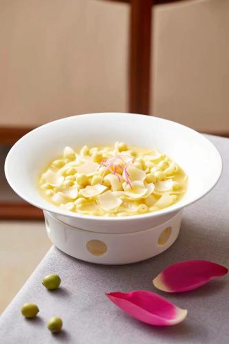 現在正是新鮮蓮子當季的時節。逸道的夏季選單中,上新了鮮蓮子煨九年百合。百合搭配蓮子,甘甜潤肺,綿糯可口,也是夏季清心養肺首選。