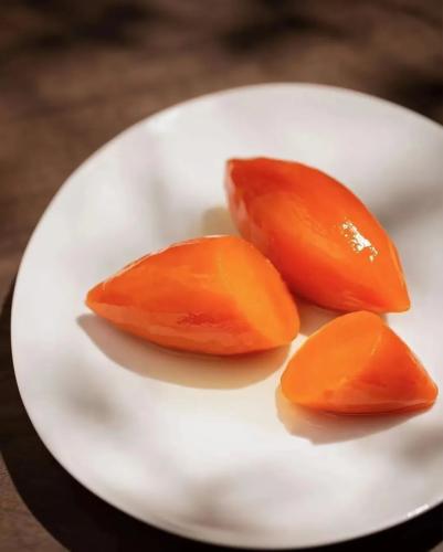 這應該是我們吃過最高階的紅薯吃法!新榮記的蜜汁紅薯,紅薯取其精華,細細雕琢成乾淨可愛的橄欖形,配以蜜汁用文火慢煲,色澤通透,內裡燉得酥爛綿甜,滿口皆是甜意。