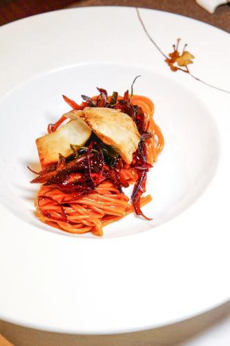 用香氣最為豐腴飽滿的雞縱菌搭配天使面,以油鎖住濃烈香氣,蔥油拌麵的高階版——雞縱菌天使面堪稱整餐壓軸大戲,將雲南雨季的鮮收入盤中。